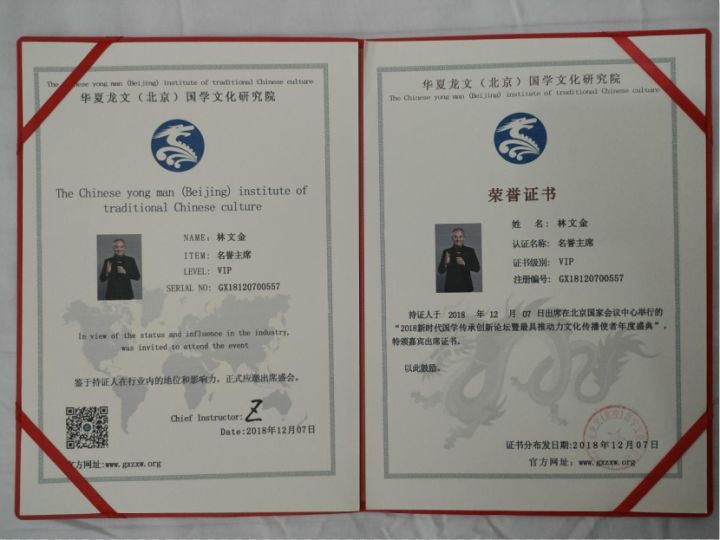 林文金老师经多位正宗正脉正传德高望重师傅的悉心培育、口传心授、精心指点、现场示范,得其正脉真传,并将秘籍智慧结合自身的风水体悟经验,为众多姓氏的个人、家庭、家族及企事业团体单位进行寻龙点穴、道场法事及吉祥风水堪舆布局工作,德艺双馨,效果明显,有口皆碑。获得缘主福主及社会大众的广泛好评与肯定。集古今智慧,传人祖文化,成为发扬和传承易经国学文化的典范。