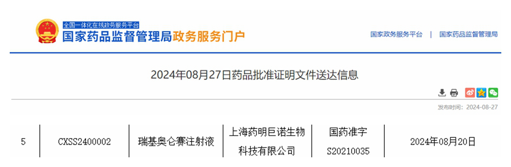 8月27日,中国国家药品监督管理局(NMPA)官网公告显示,药明巨诺靶向CD19的自体嵌合抗原受体T(CAR-T)细胞免疫治疗产品倍诺达®(瑞基奥仑赛注射液)新适应症上市申请获得批准,用于治疗经过包括布鲁顿酪氨酸激酶抑制剂(BTKi)治疗在内的二线及以上系统性治疗的成人复发或难治性套细胞淋巴瘤(r/r MCL)患者。这是药明巨诺针对倍诺达®递交的第三项上市许可申请,并成为首个在中国批准用于治疗r/r MCL患者的细胞治疗产品。