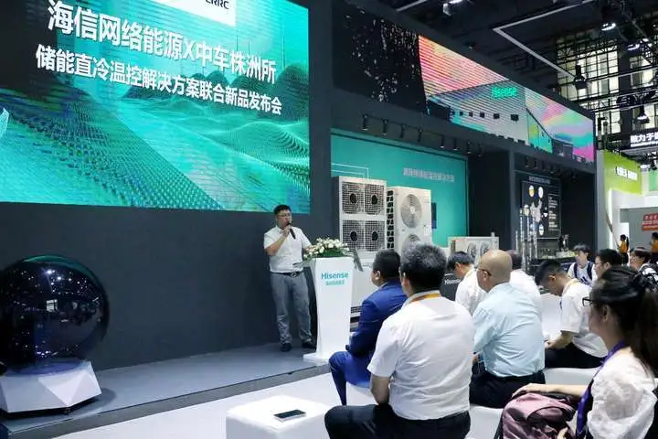 9月2日在第三届EESA储能展上,海信网络能源携手中车株洲所,联合发布储能直冷温控解决方案。此次盛会大咖云集:储能领跑者联盟理事长杜笑天,中车株洲所综合能源事业部副总经理、总工文宇良,中车株洲所综合能源事业部技术中心副主任师蒙招,中车株洲所综合能源事业部双碳技术中心储能系统部部长许东阳,海信网络能源温控事业部总经理刘文琼,海信网络能源储能事业部总经理谷培信,海信网络能源温控事业部储能温控营销部部长魏仓仓等共同出席,与媒体朋友、现场观众一起见证了直冷科技的璀璨时刻。