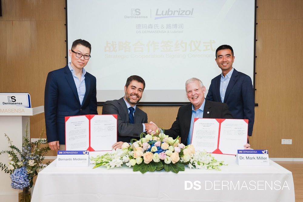 在庆典的重要环节中,Dr.Mark与路博润全球美妆负责人Bernardo Medeiros先生共同宣布了双方将在未来继续深化战略合作。作为全球化工巨头之一,路博润的Lipotec子公司以其在胜肽领域的卓越贡献而闻名,被誉为“胜肽领军者”,其在生物科技领域的研发实力堪称世界一流。此次合作签约仪式不仅见证了双方的长期合作关系,还进一步巩固了德玛森氏与路博润之间的紧密联系。