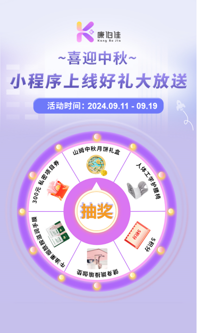 康伯佳小程序震撼登场,抽奖活动已火热启动,10000份上线好礼参与抽奖即得,100%中奖率,速速行动吧~