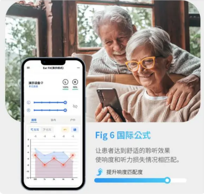 每个人的耳型和听力损失情况各不相同,因此个性化服务显得尤为重要。未来客助听器采用可视化APP,Fig6验配公式,智能专业验配,根据听损人士的听损情况1对1验配实现“定制”理念,根据每位用户独特的需求生成定制方案,让每位客户都能找到最适合自己的产品。