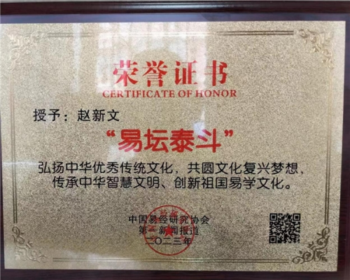 易学文化博大精深,源远流长。无数易学工作者在易学的传承、创新发展的历史长河中孜孜以求。赵新文老师是中国易学的传承者,是复兴中国易学的坚定实践者,赵老师一直以来带头倡导发掘好、传承好、保护好易学文化,是易学人义不容辞的历史使命和责任。在现今中发展易学的洪流中,长风破浪,勇当排头兵。“传承易学文化,弘扬民族精髓”,他的大爱佛心,奠定了他致力于推广中国易学文化的雄心壮志!!!