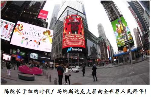 2019年大年初一荣登全球瞩目的美国纽约时代广场纳斯达克大屏幕,代表中医向全球人民拜年!