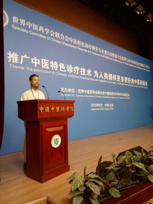 四、于2016年9月24日,在京受邀参加在中国中医科学院举办的“世界中医药学会联合会中医特色诊疗研究专业委员会第三届换届大会暨第九届中医特色诊疗学术年会”,并在台上作《一阳复生癌自灭 火针治癌显奇效》治癌成果报告!论文入选《论文集》并获优秀论文奖!