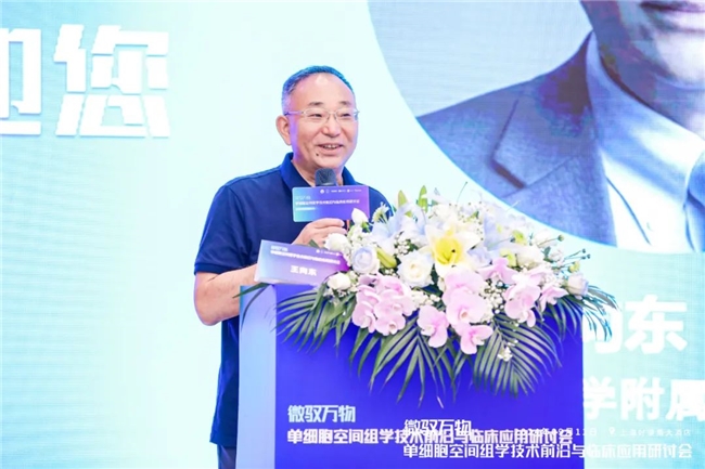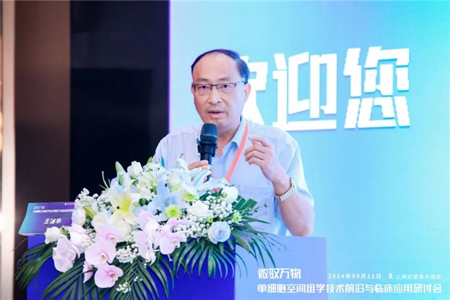 本次研讨会由转化医学网CEO、新源转化医学中心主任潘刘阳先生主持。会议开场,由主办方代表中国医药生物技术协会基因检测技术分会主任委员、复旦大学附属中山医院呼吸首席科学家王向东教授进行致辞。王教授首先对大家的到来表示热烈的欢迎,他表示当前生命科学行业正处于前所未有的变革期,基因编辑、细胞治疗,人工智能等学科技术正以前所未有的速度来重塑我们的医疗,如何有效地整合资源确保科研成果落地是我们面临的共同难题。单细胞空间组学代表了今天生命科学前沿科技的地位,单细胞科技是临床未来发展的阶段,单细胞测序已经在很多科研场景中使用了。他希望与会的各位专家学者通过今天的交流能够多建立联系,多进行沟通,借助转化医学网的平台碰撞出新的思想火花,拓宽探索的解决之道,并祝大会圆满成功!希望所有参会老师能满载而归!