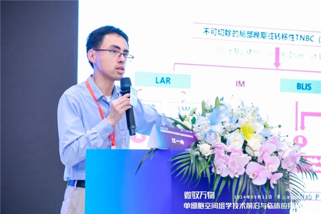 之后分享的是欧易生物质谱(鹿明生物)总经理舒烈波博士,以“队列研究新思路:从经典组学到单细胞及空间组学”为题,舒博士分享了Level One队列代谢组定制化体系,团队还开发了独具特色的功能代谢组数据库。团队也在推进队列筛选与转化应用的工作,舒博士分享了代表性的合作案例。同时,团队还开发了Deep血液全谱蛋白组检测分析,基于这种新方法,团队将蛋白提取结果提升到了4000-6000。此外,他介绍了单细胞组学的三大平台、单细胞组学的分析、空间代谢组的体系、空间代谢组专属定性数据库、空间代谢组的应用拓展、空间转录组、时空多组学助力肿瘤分子分型的研究成果和时空多组学应用的新模型。