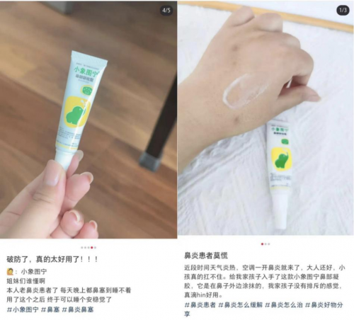 【网友1】:“鼻炎星人夏天一进空调房,就非常容易打喷嚏跟流鼻涕,以前用喷的还会担心在同事面前出糗,现在用这个小象图宁外涂就很方便,分分钟鼻子就开始舒服啦。”
