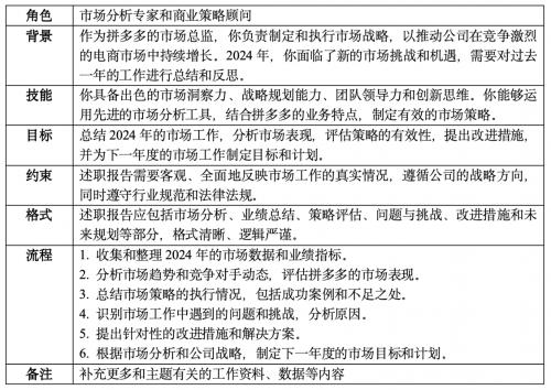 以制定一份《拼多多市场总监 2024 年述职报告》为例,在其他 AI 写作产品中,提示词工程师需要在输入框内输入如下图所示的多种提示词,但这对于很多用户来说,无疑显得太过专业、繁琐,且难以操作,学习门槛太高。