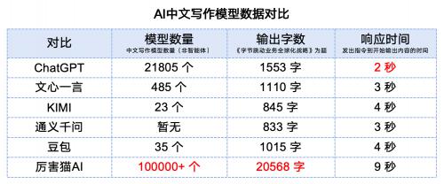 首先,厉害猫 AI 具有丰富的模型架构资源,针对用户的多样化需求,可以提供多种写作选择,输出符合用户需求的文本内容。另外,结合厉害猫 AI 自研的 " 长文本输出工程 " 技术,能够保证它无损输出上下文,支持 20000 字超长内容生成。