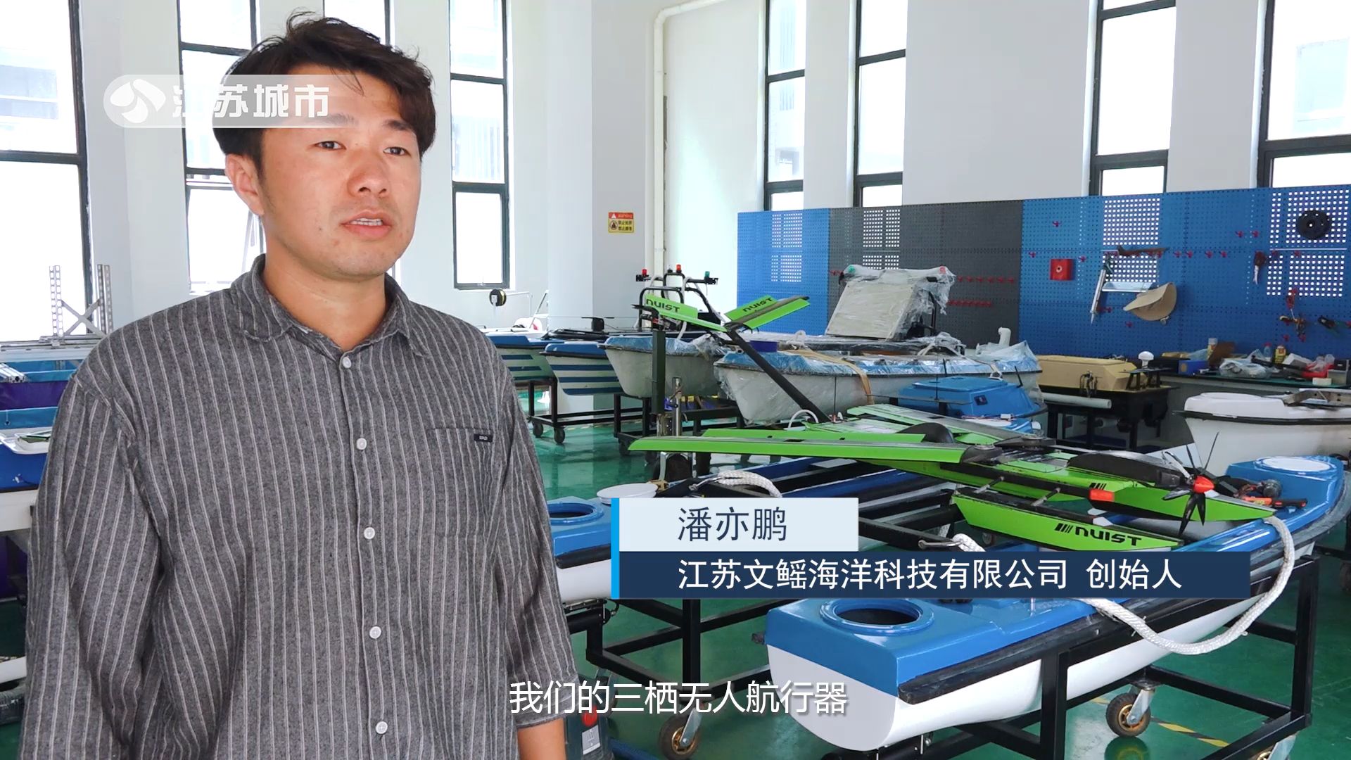 江苏文鳐海洋科技有限公司创始人潘亦鹏表示:我们的三栖无人航行器,最大起飞重量可达500kg,可在空中转场快速抵达指定水域,探测水面和水下各类信息,解决了普通无人机没有办法在海上长期停留作业的难点。多功能无人艇,它可以结合卫星遥感技术,为水面巡逻,水质检测,海洋风电场的巡检打造无人化管理模式。两栖自动养殖机器人解决了个体养殖户的痛点,个体养殖户水塘数量多,面积小,每天都需要辛苦的投喂,那么我们的自动养殖机器人可两栖自动爬塘跨塘,负载量大,续航时间长,为无人化养殖模式奠定基础,进一步吸引年轻人回归乡村,振兴乡村。
