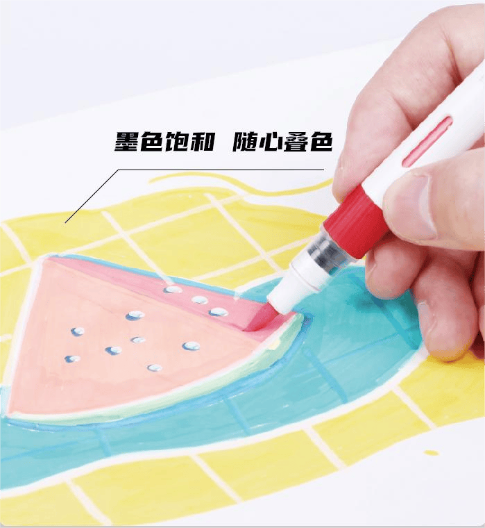速干性和防水性:丙烯马克笔在使用后能够快速干燥,避免画面因墨水未干而弄脏,也能提高绘画的效率,同时防水性好的丙烯马克笔可以保证作品的持久性,不易被水晕染或褪色。