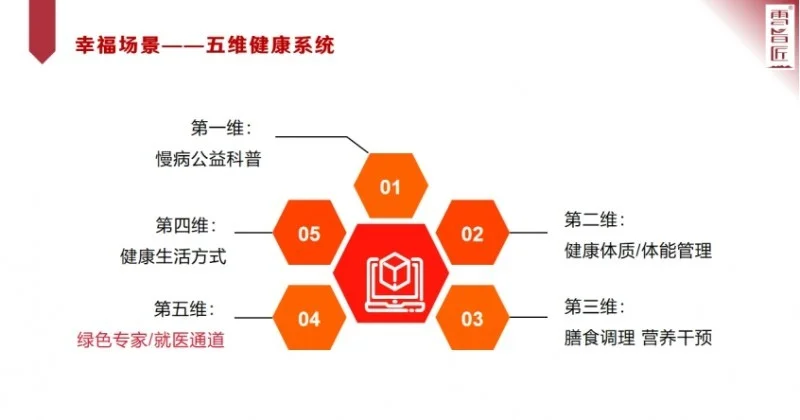 基于此,雪旨匠凭借多年的深入研究与成功案例的积累,创新构建了涵盖健康公益科普、健康体质与体能管理、膳食调理与营养干预、健康生活方式以及绿色专家与就医通道的五维健康系统。具体来说,雪旨匠将通过健康公益科普的形式,向民众传授健康生活方式的知识与技巧,并通过个性化的体质管理、科学的膳食规划及营养干预策略,从多维度、以多方式助力国民迈向健康生活方式的新台阶。