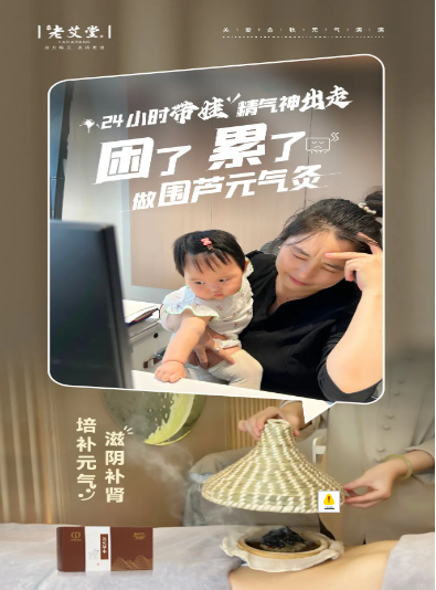 老艾堂围芦元气灸,金秋专研品项。无论您处于直播在线状态卡壳、驾车困顿劳累、24小时带娃精气神出走、开会瞌睡叫不醒、姐妹逛街体力不支、撸铁过度身疲体乏、熬夜追剧神情疲惫、忙里忙外忙家务……何种状态,困了,累了,就做围芦元气灸!老艾堂全国门店金秋专供灸项,欢迎进店咨询!