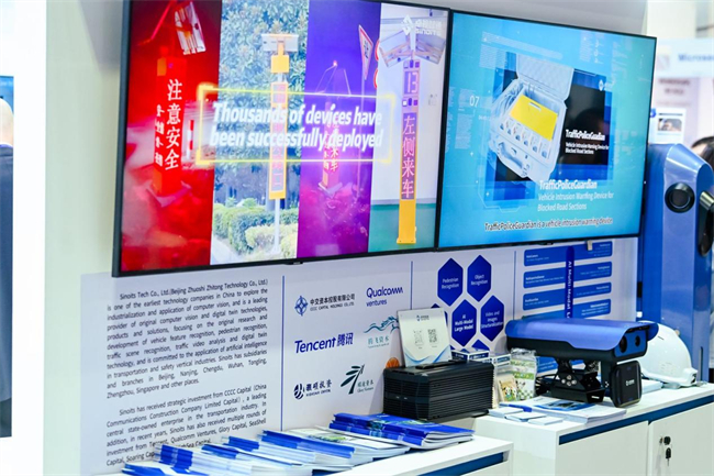 除了现场陈列的部分产品实物外,卓视智通还通过视频、画册的方式展示了对重点路段来往车辆进行提醒,提示车辆降速观察风险的“交安哨卫”道路安全预警系统、基于数字孪生技术构建全息运营监测显示与控制平台,可实时掌握隧道等重点路段的车流情况、交通态势、交通事故、潜在风险等情况的“飞檐”巡检应急处置机器人、可实时精准监测作业现场所在车道上游的远距离车辆动态,保障道路车辆及防护区域内工作人员生命安全的“警钟照”养护区防闯入预警系统、专为交警铁骑人员设计开发,集先进人工智能AI技术、大倾角车辆号牌识别技术、高清摄像技术、物联网通信及多模态定位技术于一体的“云缉”铁骑移动战警系统、采用物联网、移动互联网、计算机视觉等技术,拥有低成本、高精度特点的“空中地磁”车位检测系统等软硬件产品,充分彰显了卓视智通在智能交通领域的技术广度和深度。