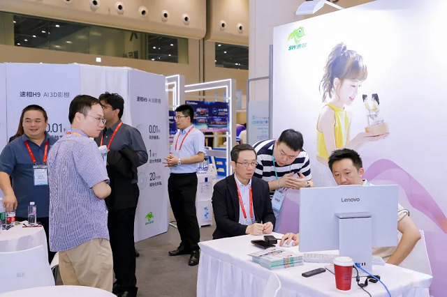 速相H9 AI 3D影棚凭借速相科技自主研发的高速时间同步算法、Sparse-view三维扫描重建引擎与3DAI模型,显著提升人像三维重建的质量与鲁棒性,降低三维重建的算力成本。单次拍摄的同步时间更是缩短到0.01秒左右。吸引了到场行业专家、学者及媒体的驻足了解。