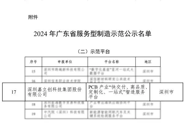 近日,广东省工业和信息化厅发布《2024年广东省服务型制造示范名单》(以下简称《名单》),电子及机械产业一站式基础设施服务提供商嘉立创入选。