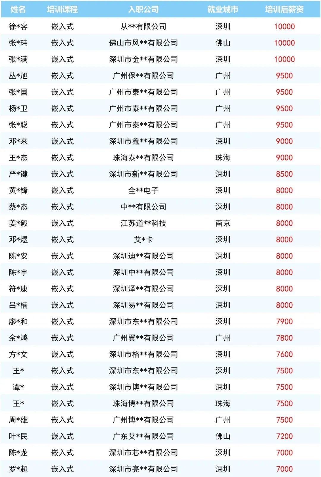 知名企业纷纷抛来橄榄枝,一份份闪耀着荣誉与希望的高薪offer,成为了对他们辛勤付出的最佳回馈。这不仅是个人荣耀的加冕,更是粤嵌教育品牌力量的又一次生动展现。