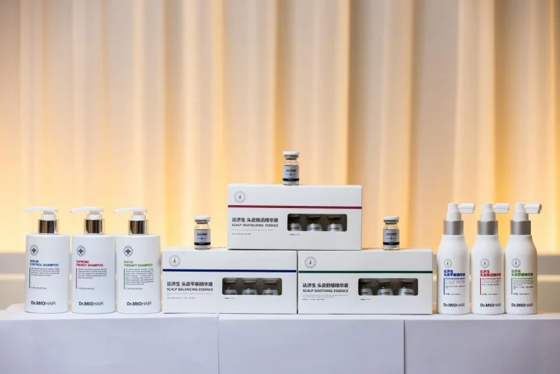 为实现这一目标,达济生精心研发头皮清洁滋养液、洗发露和精华液,专注于改善头皮微环境。随后,利用精心配比细胞因子寡肽、氨基酸、维生素以及微量元素的头皮修复护理精华安瓶GS101+GS109,为毛发供给必要的营养支持,从而促进毛发的健康生长。该体系的成功落地,展现了达济生对头皮健康管理的深刻理解,进一步巩固了其在该领域的中坚地位。