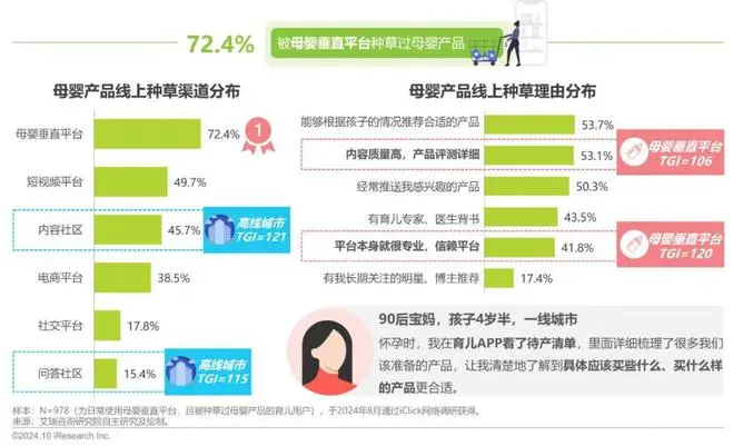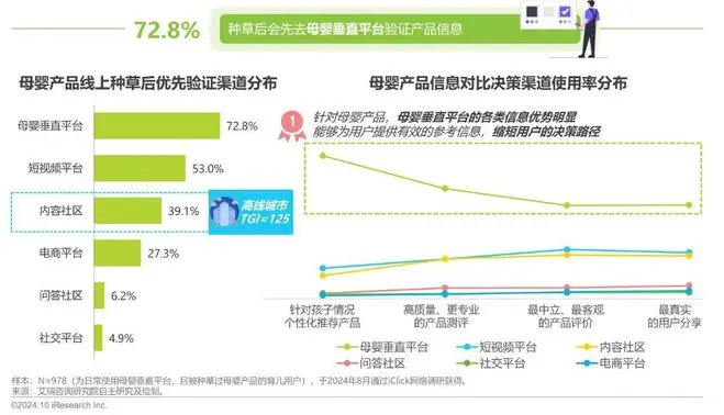 1.种草:母婴垂直平台种草能力强,平台自身的信赖度、专业性和高质量内容体系能够唤醒用户需求;