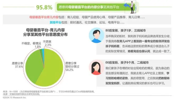 4.分享:母婴垂直平台内容传播价值高,外扩能力强,用户愿意将平台内的育儿经验和产品推荐分享至其他平台