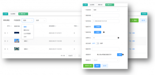 系统支持多种格式的课件上传与管理,如视频文件、公众号视频以及PDF等各类文件,让讲师能够灵活准备教学材料,同时学员也能随时下载或在线查看,便于预习和复习相关知识。