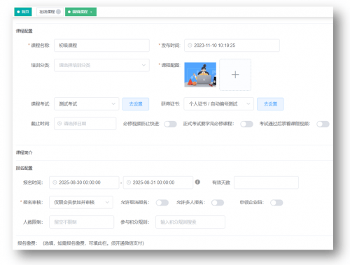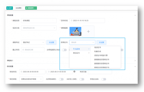 秘书处工作人员可以轻松在后台创建、编辑及发布培训课程,包括设定课程名称、配图、课程时间、对应的考试、证书等,这一过程不仅简化了传统的管理方式,还极大地丰富了课程信息的呈现形式,确保了会员能够获取到全面、直观的课程内容概览。