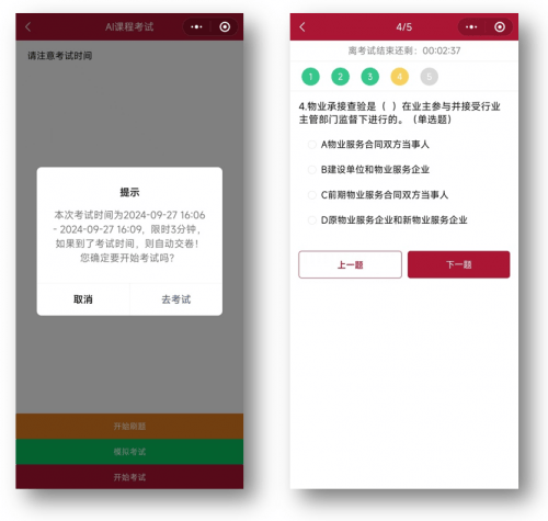 在线学习课程之后,用户可以自行在小程序上进行在线考试。无论是模拟考试、正式考试还是补考,用户都可在协会小程序上完成答题,并即时获取成绩反馈。同时,系统还支持设置题目解析,帮助用户及时查漏补缺。