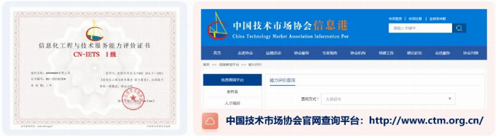 一级(CN-IETS 1):代表单位的信息化工程与技术服务能力在同行业处于领先地位。
