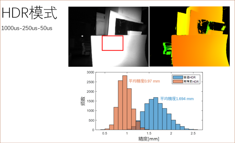 DM相机还具备高精度HDR模式,能够在高低反同时存在的复杂场景中保证完整成像。通过多图像聚合的方式,相机可以大幅度降低背景噪声,输出高精度图像。这一特性使得相机在工业自动化、物流科技等领域的应用更加广泛,尤其是在光线条件复杂或物体表面反射率差异较大的场景中,相机仍能保持稳定、准确的成像效果。