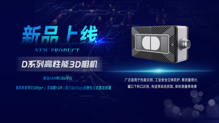 DM相机以ToF(Time of Flight,飞行时间)技术为核心,兼容ARM和X86计算平台,具备6TOPS的强大算力、50hz+的高帧率以及高精度HDR等卓越性能,能够在复杂及动态环境中保持稳定的图像感知能力,为远距离非接触测量、动态场景的流量计数、工业自动化、物流科技及机器人应用等场景提供高效精准的数据支持。