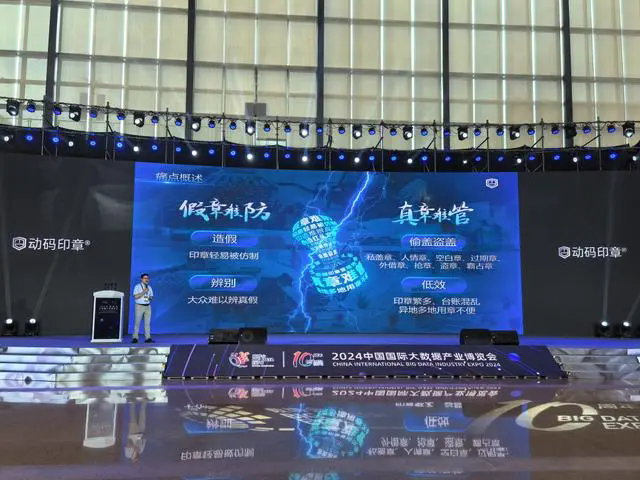 8月29日,在2024数博会举办期间,矩网科技自主研发的动码印章数智产品在贵阳国际会议展览中心发布,矩网科技有限公司全国渠道总监王永生作介绍。