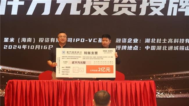 2024年10月16日,湖北杜士高科技有限公司在湖北省咸宁市通城县锡山华美达酒店隆重举办投资签约仪式暨新品发布会。