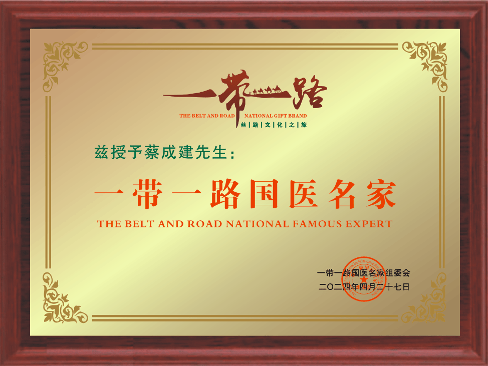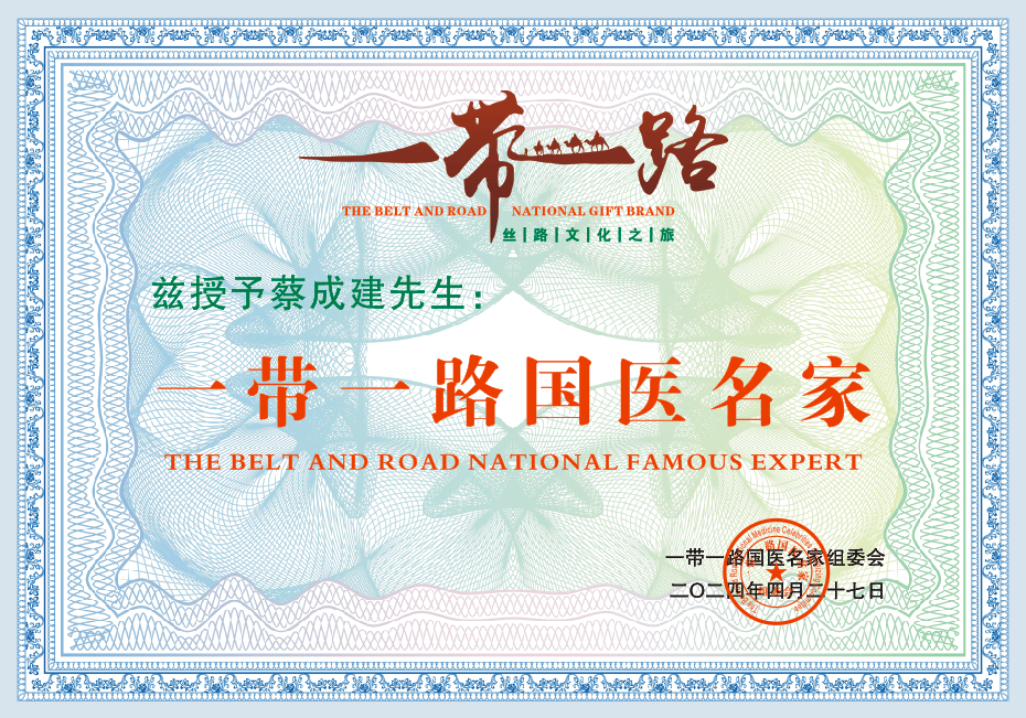 恭贺江苏宏碧能源科技董事长蔡成建荣获“一带一路国医名家”殊荣