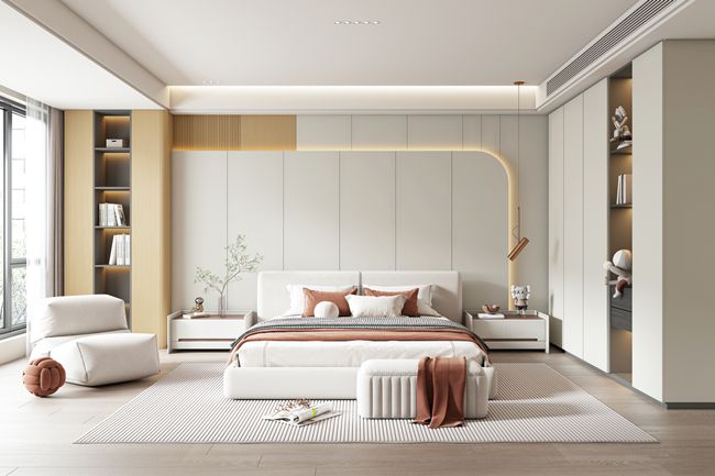 除了美学上的优势,柯凡有品的门墙柜一体化设计在实用性和功能性方面同样表现出色。充分考虑居住者的实际生活需求,提供多种组合方案,如护墙板与满墙柜的搭配、护墙板与飘窗的结合等,以满足不同空间的功能需求。通过合理的布局和人性化的设计,实现了视觉上的延伸,让整体空间看起来更加开阔和谐。