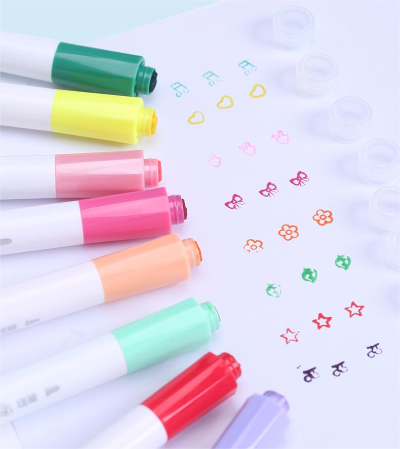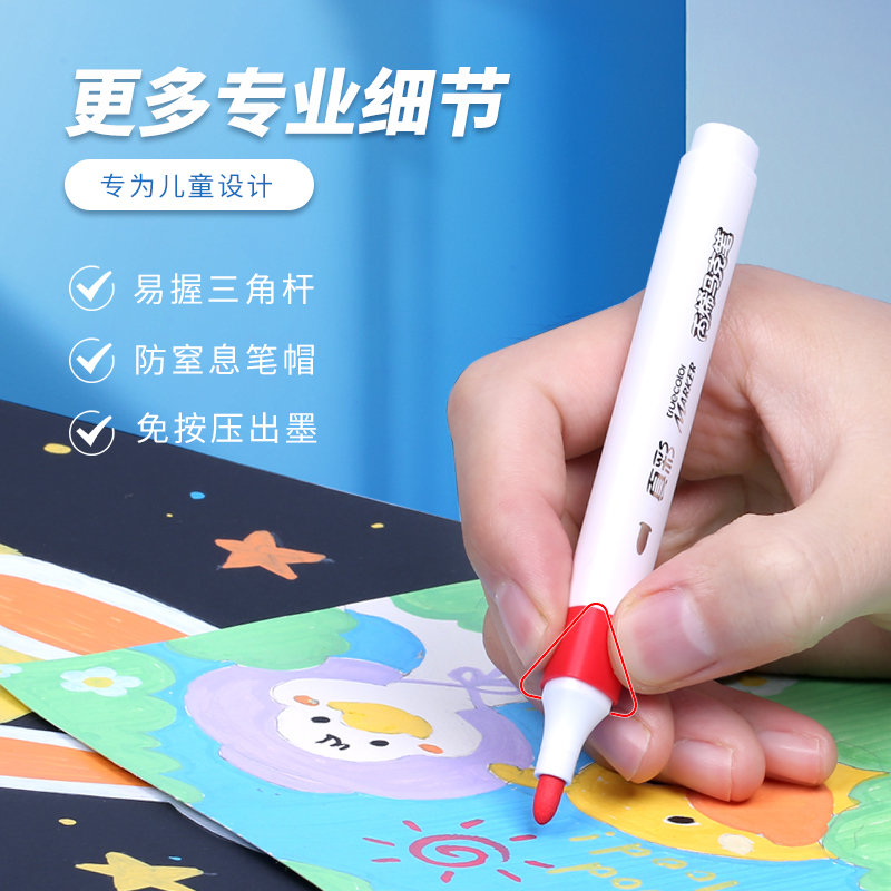 儿童使用:若是给孩子使用,要特别关注笔头的安全性和墨水的无毒环保性。真彩有为儿童设计的三角杆丙烯马克笔,三角杆具有正姿作用,好抓握以及真彩印章丙烯马克笔,小印章有着更大的趣味,让孩子更加爱上绘画。