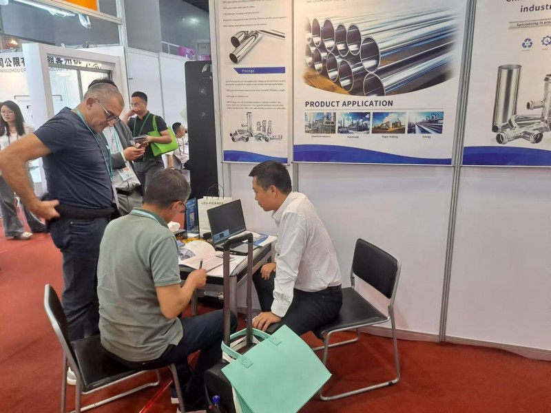 在广交会现场,广州美亚的展位( L11.1馆,L11号)吸引了众多外商前来参观洽谈,了解美亚不锈钢水管的生产工艺、产品质量以及服务流程,对美亚的科学生产流程、严格质量管控留下了深刻的印象,并与公司领导就未来合作展开了深入探讨。