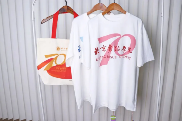 北舞校庆专版纪念品包括一款70周年专版纪念衫和一款专版帆布挎包。接到任务后,柏屋克服了时间紧、任务重的困难,从设计、选料、确认、采料、印花、生产制作到发运,都在最短的时间内完成,工人师傅们更是放弃国庆休假,加班加点,终于在校庆前夜圆满完成。