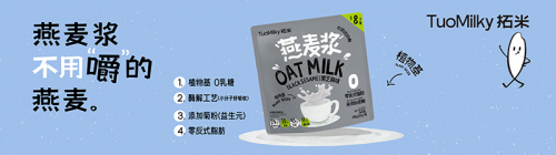 对于酶解燕麦浆粉,拓米向我们介绍到:酶解燕麦浆粉是燕麦经研磨破壁、均质磨浆,加入淀粉酶将部分淀粉水解成小分子水溶性营养物质,从而更利于人体的消化和吸收。经过酶解的燕麦浆粉,自然清甜,口感鲜醇。保留了燕麦的麦香味,又拥有奶的丝滑浓郁。此外,拓米还有燕麦一口脆、简食燕麦脆片、全麦脆片等行业创新产品,为燕麦食品的发展提供了更多新的可能。