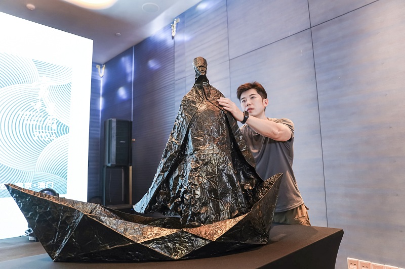 艺术挚友刘通,沉醉于苏东坡遒劲雄浑、墨韵生动的书法,赞同他“凡物皆有可观”的美学逻辑,一幅折纸作品《纸境·东坡行》,生动传承了一代文豪处变不惊、乐观豁达的精神;