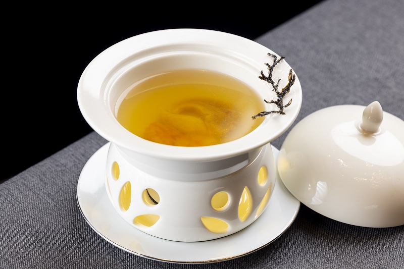 苏东坡对茶的钟情举世皆知,诚如他于《寄周安孺茶》中写道:“茶实嘉木英,其香乃天育”。青岛钓鱼台酒店与青岛美高梅酒店御苑厨师长林宝玉精选崂山绿茶与崂山豆腐,佐以青岛特产海胆,先将豆腐煎至金黄,再以钓鱼台清鸡汤煨至入味,最终呈现出一道色泽金黄、口感细腻、茶香四溢的佳肴:「崂山绿茶海胆锅塌豆腐」。入口的瞬间,浓郁的鸡汤、海胆的鲜美,伴随着豆腐的嫩滑在口腔中层层渐开,令人回味无穷。通过茶的现代诠释,赞美苏东坡始终保持豁达与乐观的心态和高洁品质,同时也是对传统鲁菜的一次味觉革新。