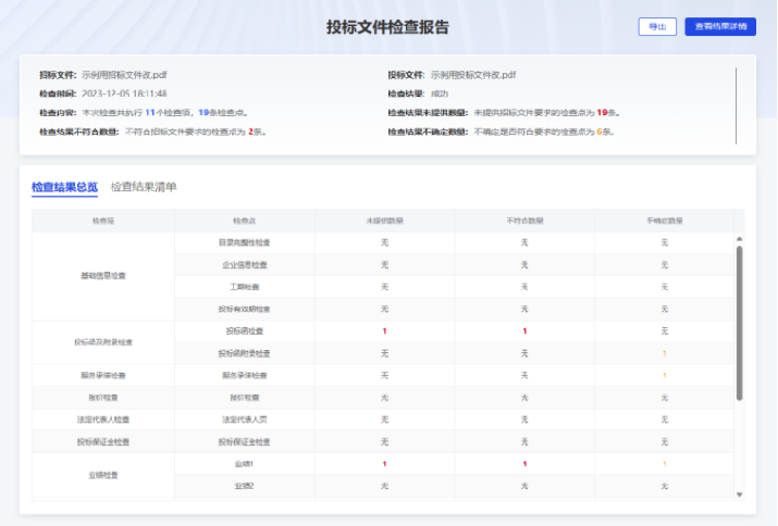 此外,系统还能自动生成评标报告,直观呈现标书合格与否的原因,一方面为专家评标提供客观依据;另一方面,也作为专家评标合规与否的辅助证据。