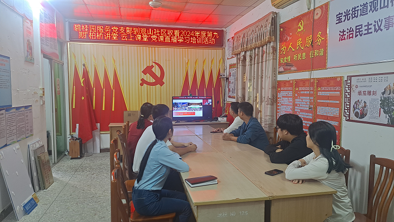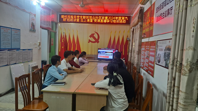 碧桂园服务高州分公司党支部参加观山社区居委会组织关于《2024年度第九期“柏桥讲堂.云上课堂”党课学习和以“中国共产党创立”为题爱国党课,从中国共产党创立的背景、创立的历程及创立的启示三个方面,回顾了中国共产党创立的艰辛和初心使命,使全体党员再次感受到了红色政权来之不易、新中国来之不易、中国特色社会主义来之不易,矢志不渝践行红船精神。