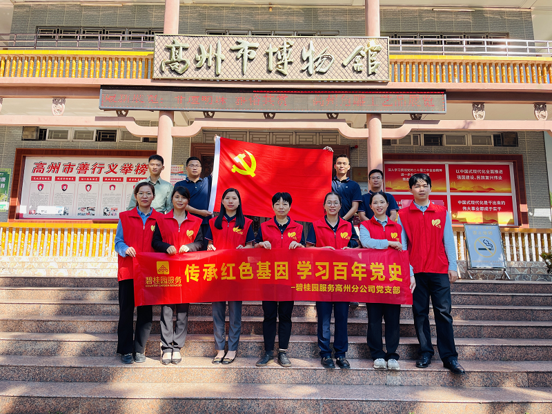 为庆祝中华人民共和国成立75周年,进一步弘扬爱党爱国家的企业文化,激励集团全体党员、员工满怀饱满热情投身工作,共同建设新时代物业企业,积极投身中华民族伟大复兴的事业,碧桂园生活服务集团股份有限公司高州分公司党支部于10月“爱党爱国文化活动月”举行了一系列文明实践活动。