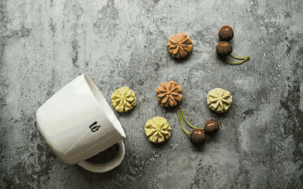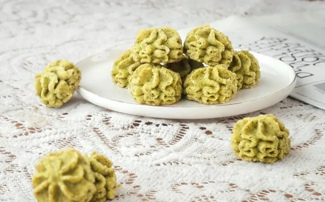 经过捣碎,蒸汽杀青、研磨等工艺,将每一颗曲奇做到颜色翠绿,酥酥的口感中夹杂抹茶的清香,微苦不涩,回味清甜,是很多粉丝的心头好。