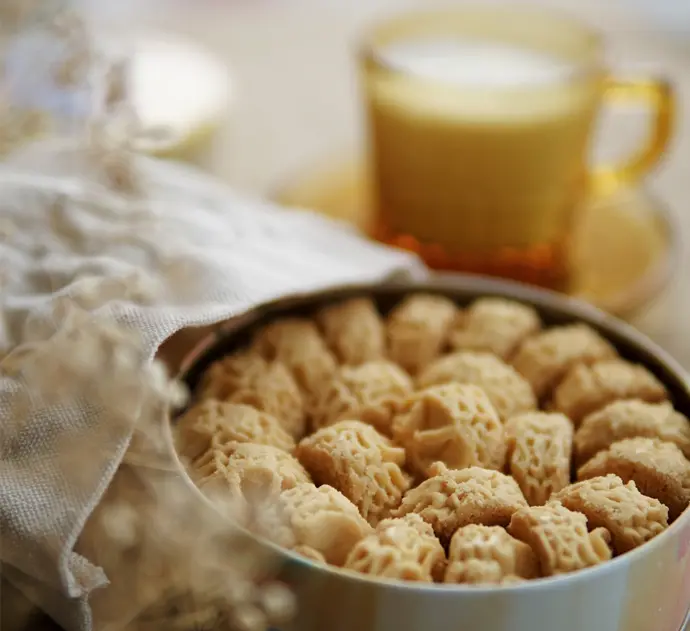 烘焙时采用热风旋转炉,确保每一颗曲奇受热均匀,通过打蛋器不断给黄油充入空气,蓬松得仿佛是注入了空气,最后呈现出来的口感就是大写的:酥!