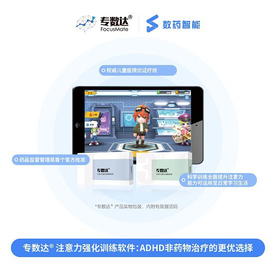 受试者为6-12岁ADHD患者,均接受为期28天的数字疗法“专数达®注意力强化训练软件”治疗(每天25分钟、每周5天及以上),同时进行安全性随访。