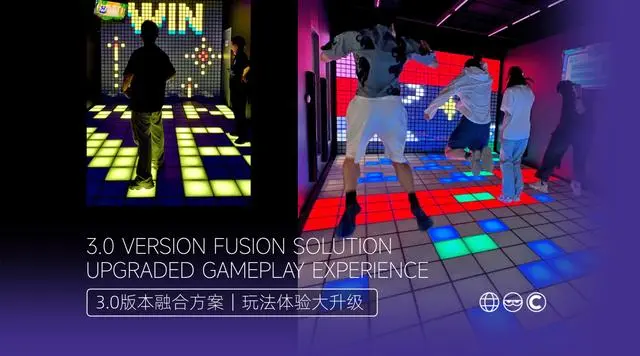 像素风装饰的游戏房间入口,让玩家一进门就仿佛置身于一个游戏世界。这种设计不仅增加了游戏的沉浸感,还为玩家提供了一个拍照打卡的好地方。游戏房间内互动闯关区域是蹦蛋小队的核心游戏区域,玩家需要在这里完成各种挑战和任务。区域内有多个正方形格子组成的互动地图,玩家需要踩灭蓝色格子、躲避红色格子,并触发彩色格子带来的意外彩蛋。同时,还会有墙灯等互动元素,增加了游戏的趣味性和挑战性。此外,在某些关卡中,玩家需要面对强大的Boss。这个区域的设计通常更加震撼和紧张,玩家需要团队合作击败Boss,才能获得丰厚的奖励和荣誉。