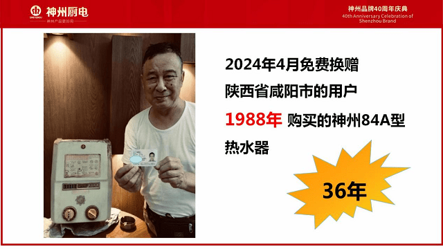 今年3月,这台燃气热水器的制造者一一广东神州燃气用具有限公司,在全国大范围内举行了“寻找2000年以前神州老产品,免费换赠活动”中,找到了这位用户进行神州热水器免费换赠。