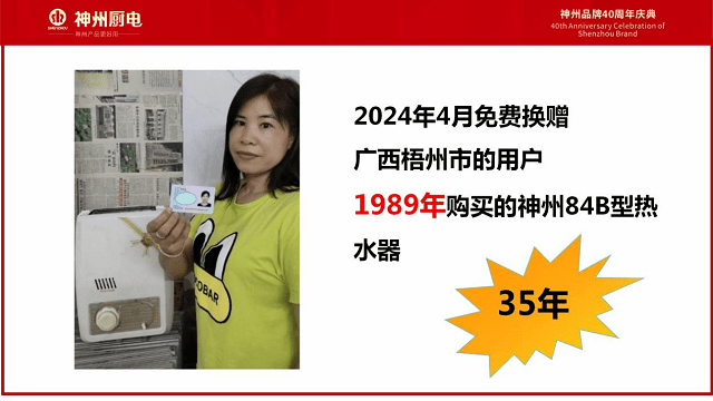 这位广西用户出生时,父母买了一台神州热水器当作她的生日礼物。35年里,这台礼物一直伴着她长大。